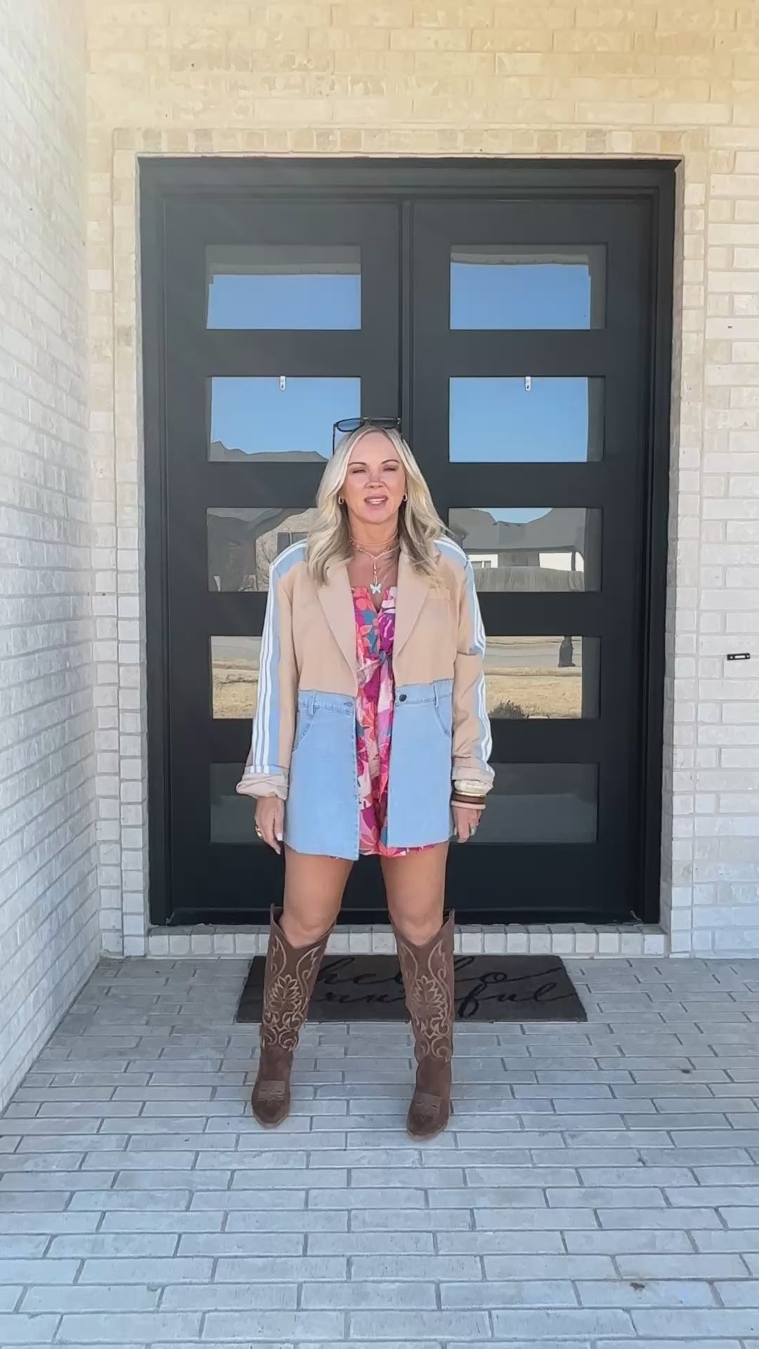 The contrast denim bottom adds that Saddle & Sun edge, while the stretch fabric keeps it comfortable and flattering.