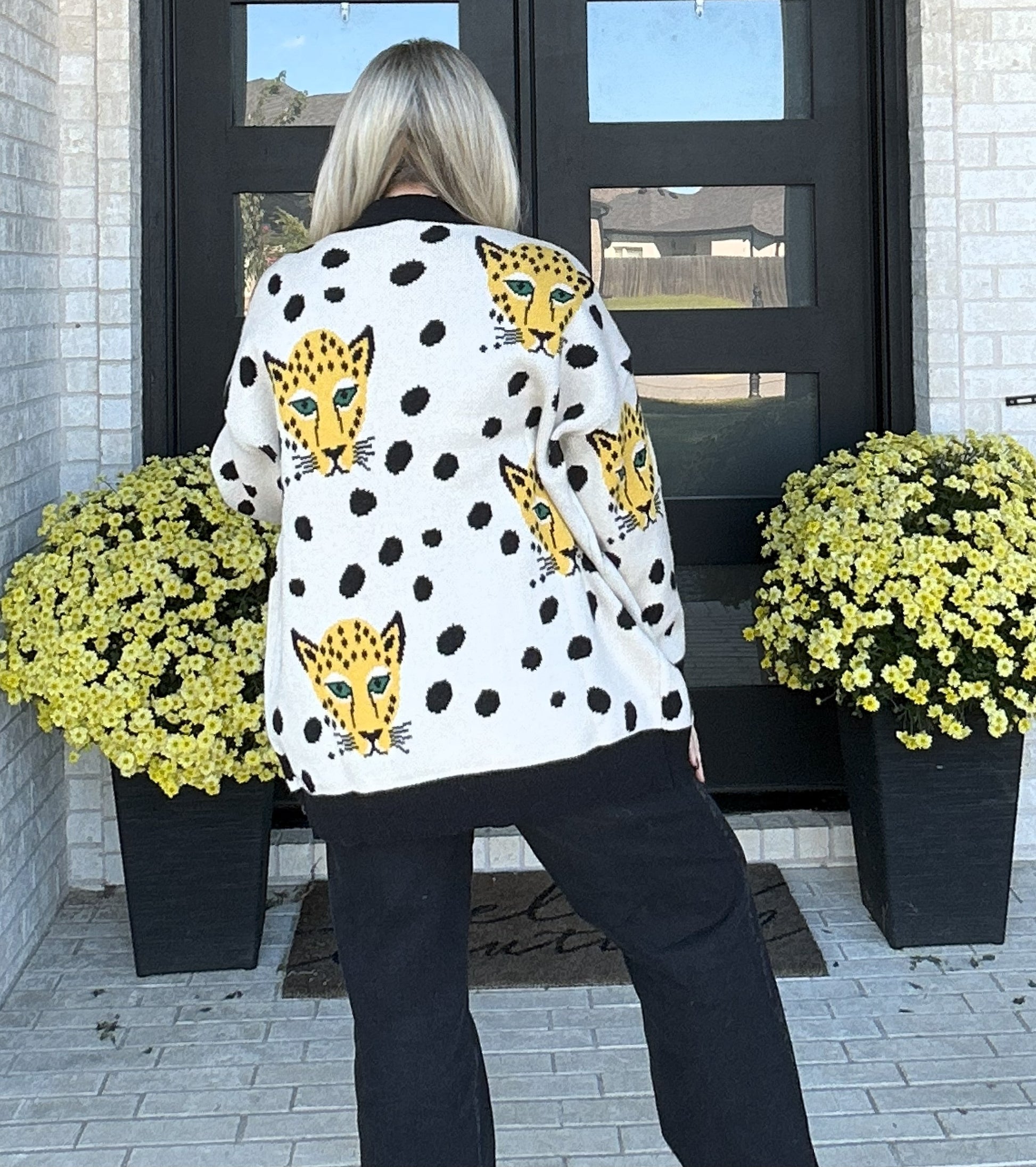 Spotted, bold, and unapologetically fun — the Cheetahlicious Cardigan adds a pop of personality to your cozy lineup. With its playful mix of cheetah prints, oversized dots, and contrast trim, this funky knit is your go-to for layering with confidence.