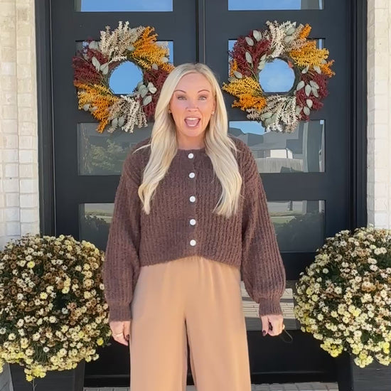 Embrace the cozy appeal of the Cloud Nine Cardi, a fluffy knit sweater crafted from luxuriously soft yarn. Featuring contrasting buttons and a relaxed, slightly cropped fit, it’s the perfect piece for effortless layering. Pair it with high-waisted jeans for a laid-back look or a sleek skirt for a touch of elevated charm. Designed for breezy days and chilly evenings alike, this cardi delivers the ultimate mix of comfort and versatility.