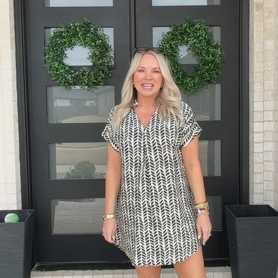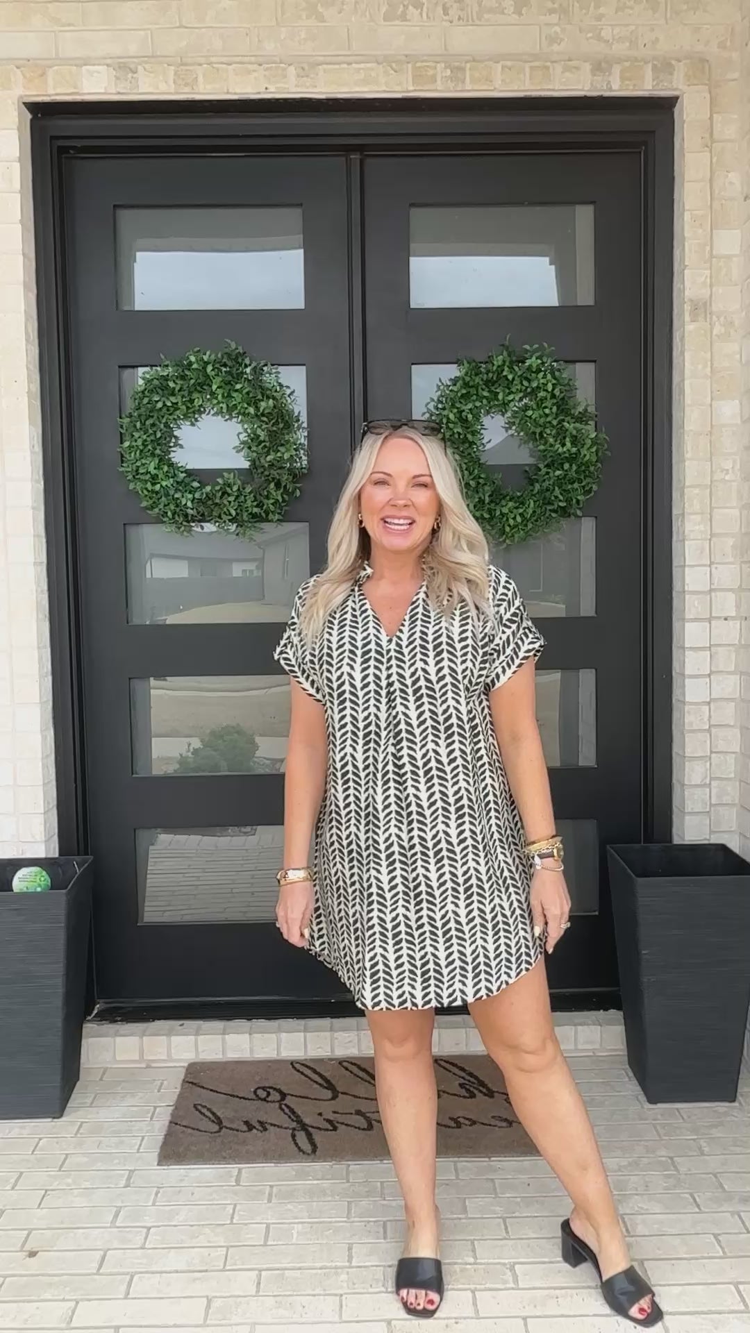Designed with a relaxed silhouette and a flattering split neckline, this lightweight dress features a bold, coastal-inspired print that adds just the right amount of interest while staying easy to wear. The flowy fit keeps it comfortable and breathable, making it perfect for everything from everyday wear to vacation styling.