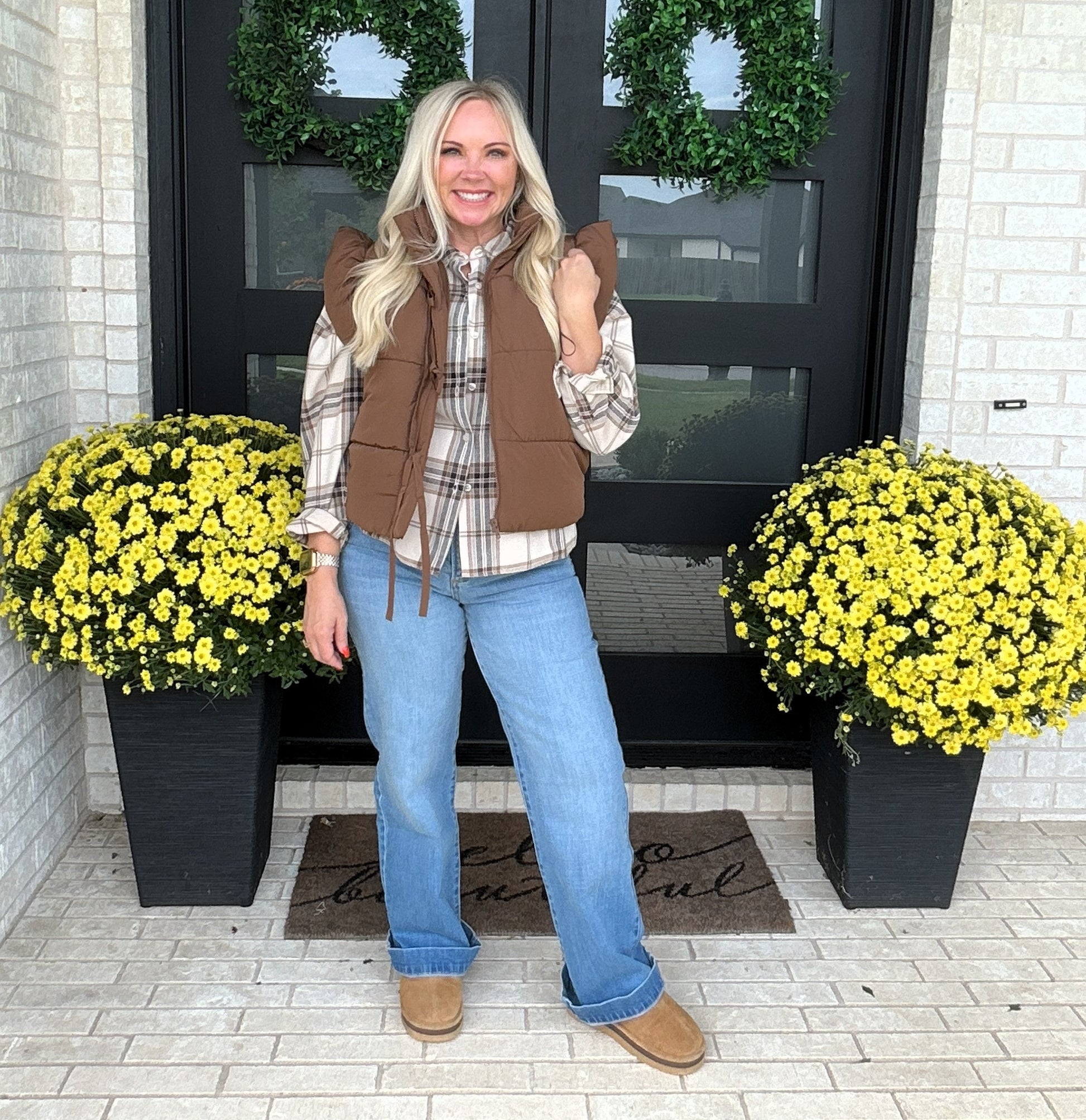 Wrap yourself in cloud-soft warmth with this rich cocoa-brown puffer. Lightweight yet insulating, it layers effortlessly over sweaters or long sleeves for a polished, coffee-toned look.
