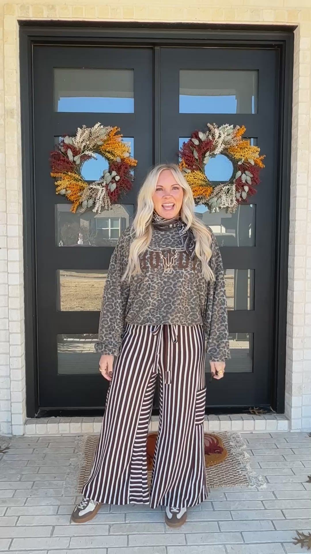 Details: Leopard print, “Howdy” graphic