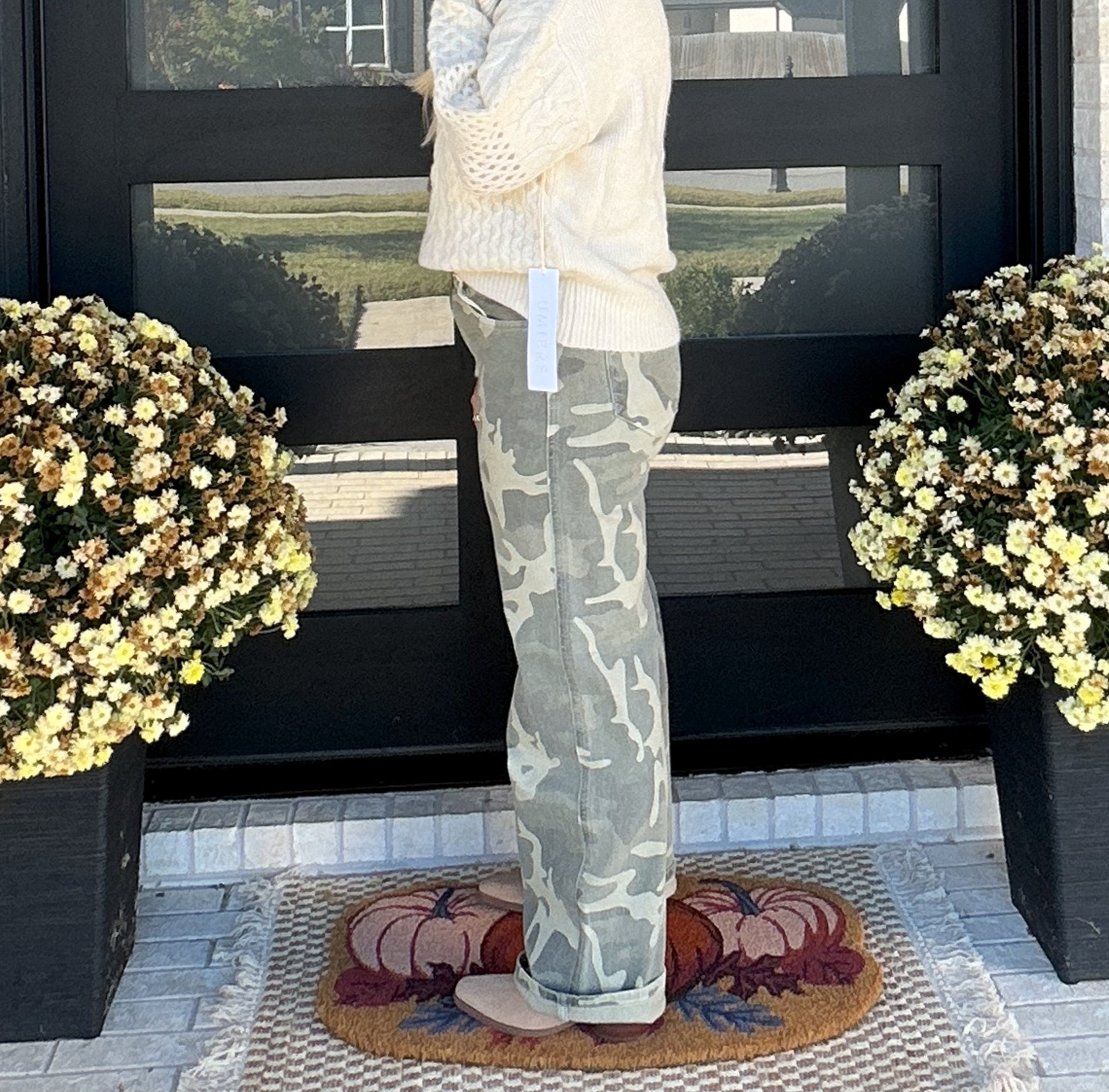 Go bold with a laid-back vibe. These camo jeans feature a comfortable stretch denim, classic five-pocket design, and a wide hem for a relaxed fit that flatters every shape. They strike the perfect balance between structure and comfort. Style them with a fitted tee or cropped sweater for that effortless off-duty look.