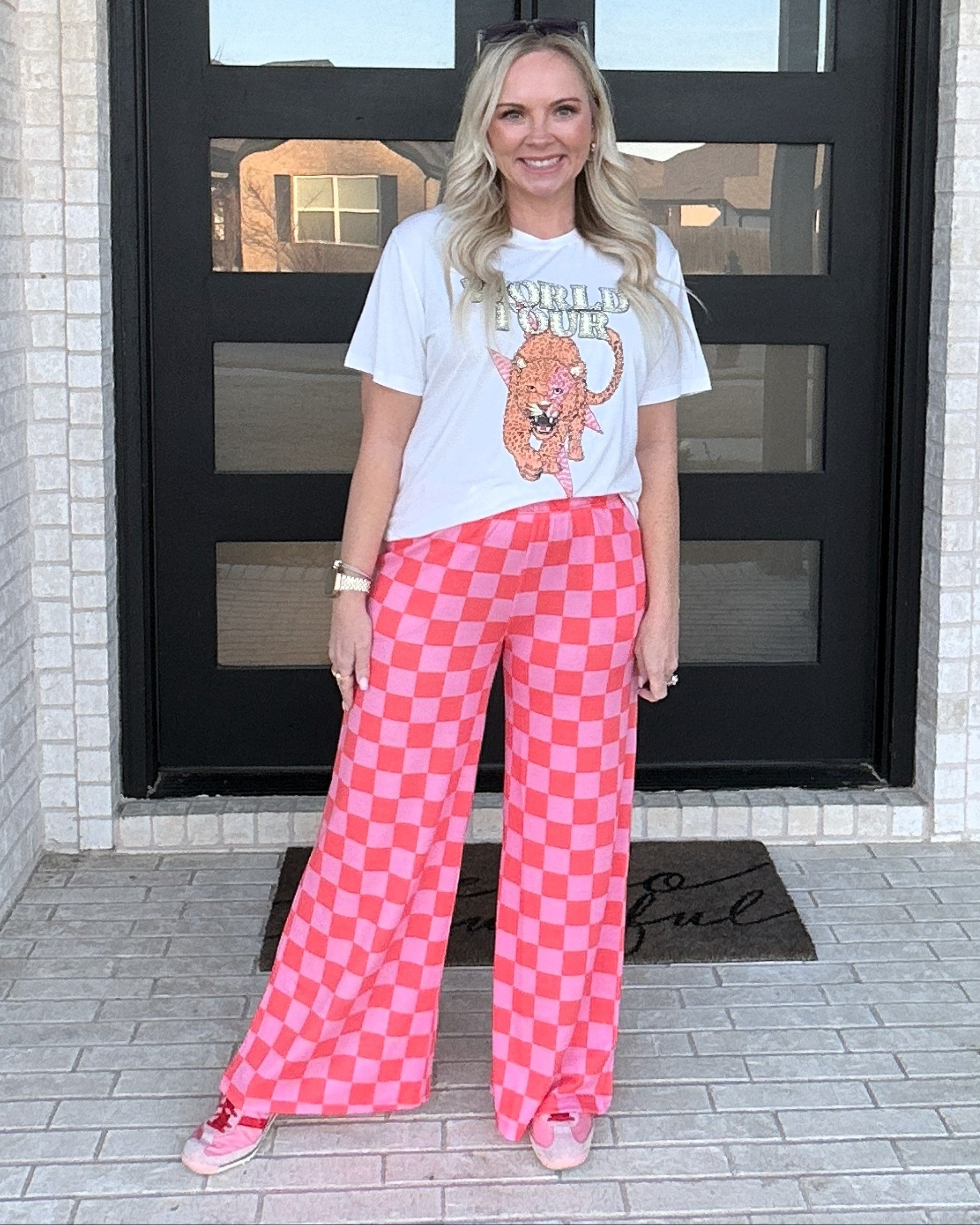 Bold, comfy, and impossible not to love. These high-waisted checker knit pants feature a relaxed wide-leg fit with a soft, stretchy feel that moves with you. Designed with an elastic waistband for all-day comfort, they’re the perfect statement piece to pair with graphic tees, cozy knits, or a simple tank for an effortless, feel-good outfit.