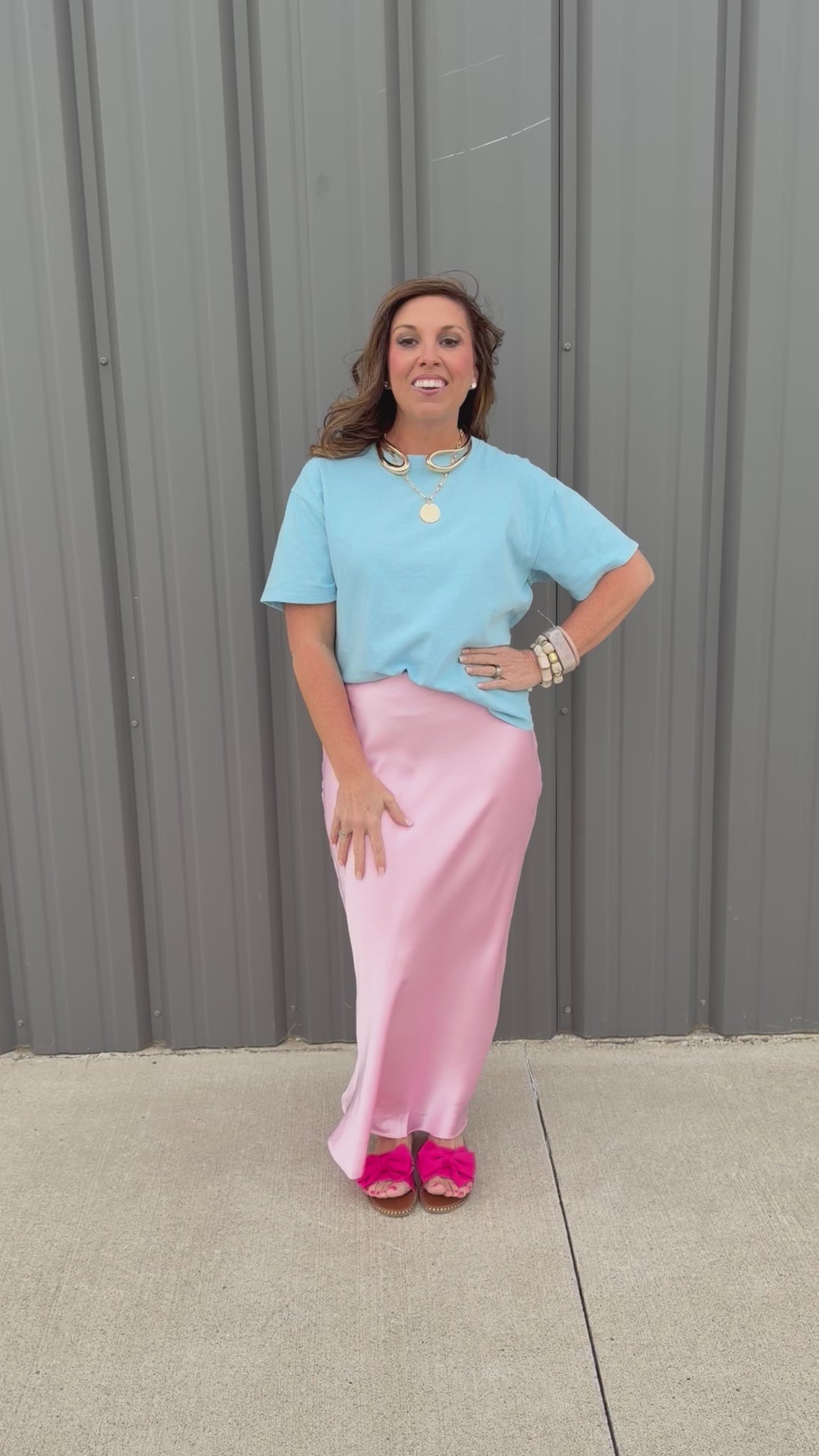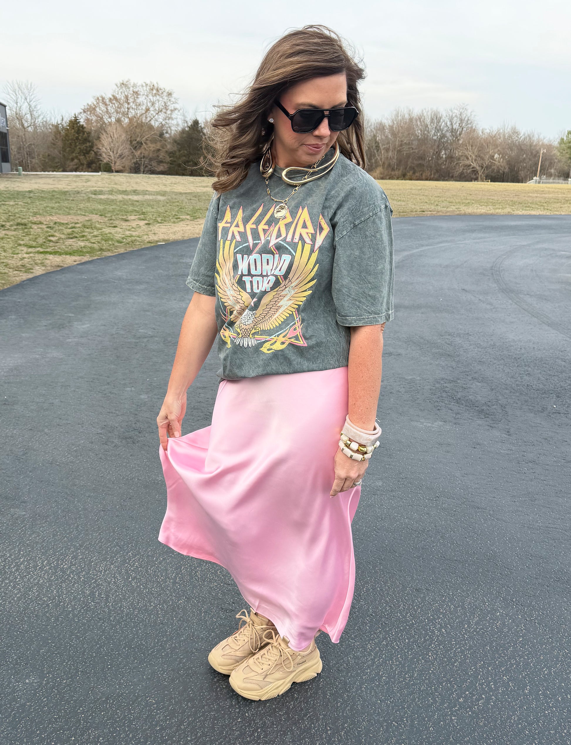 - Satin midi skirt