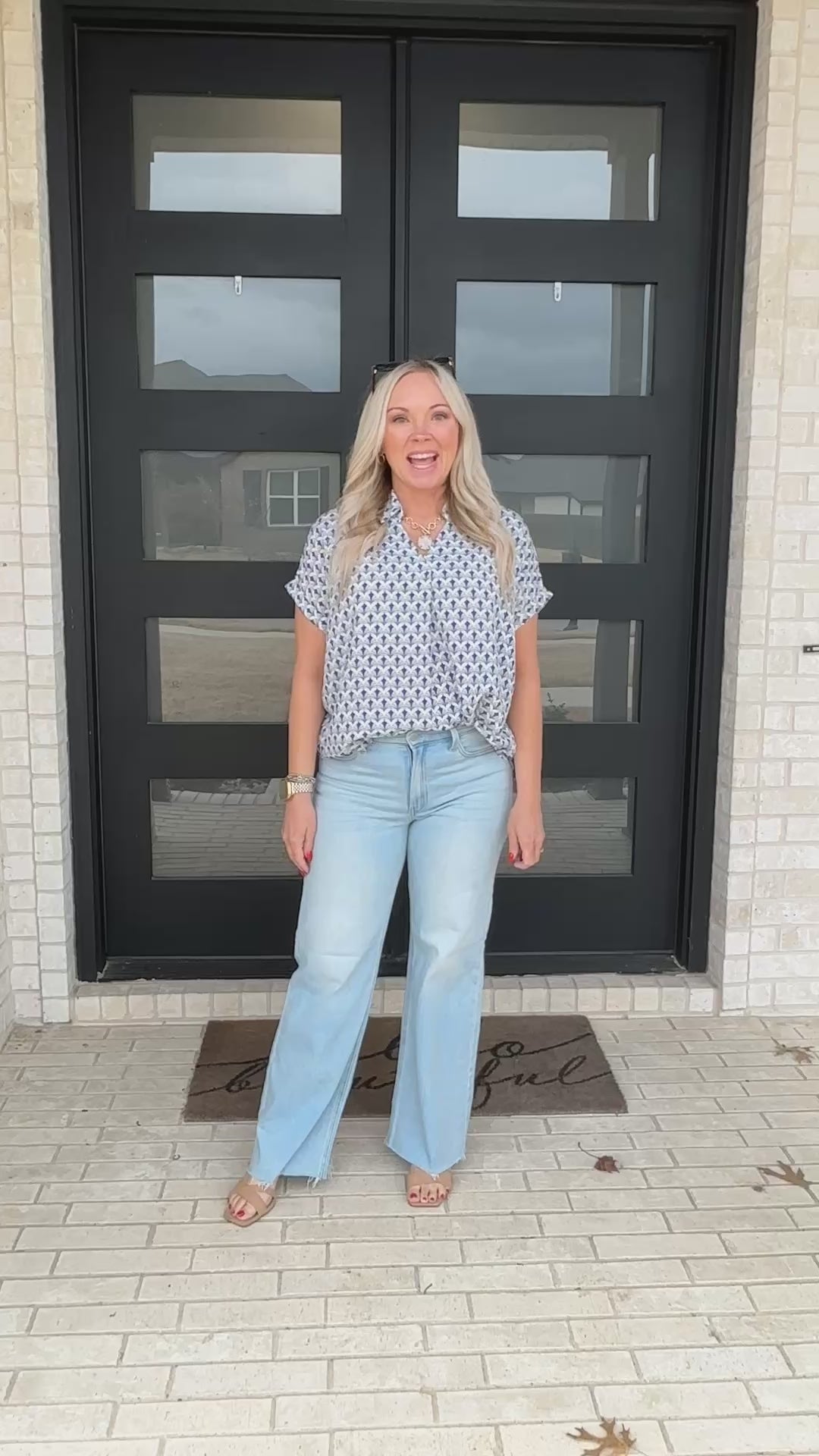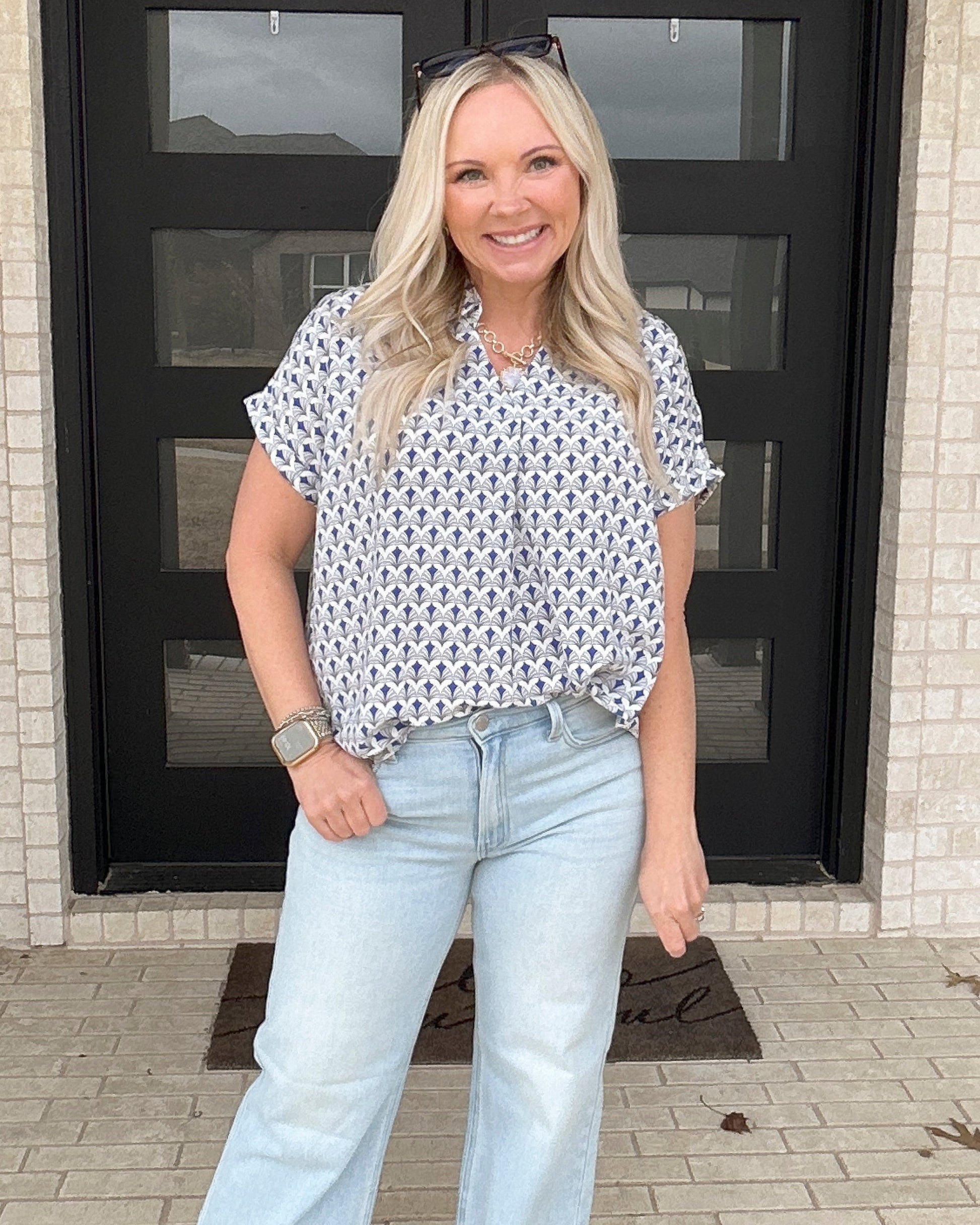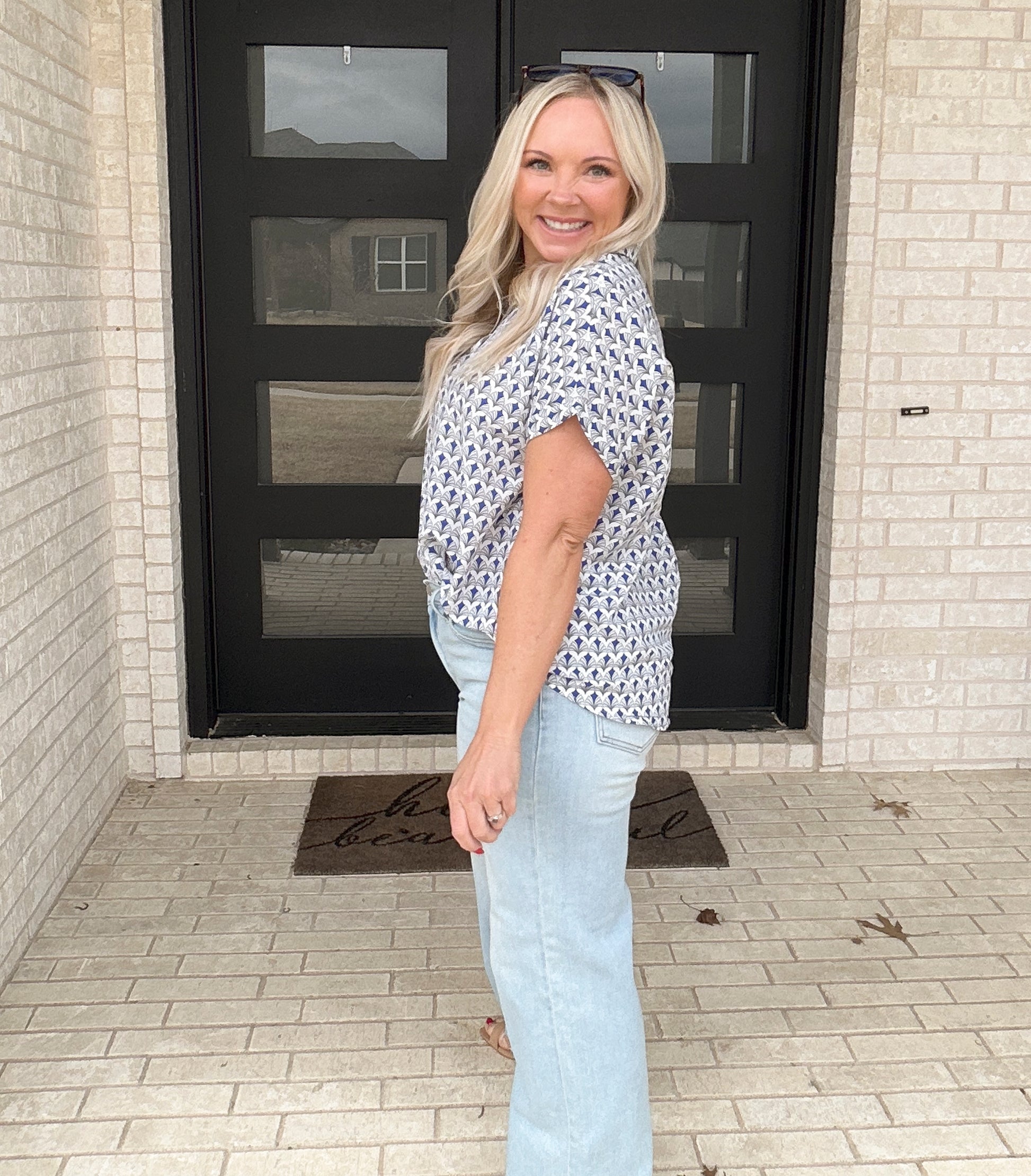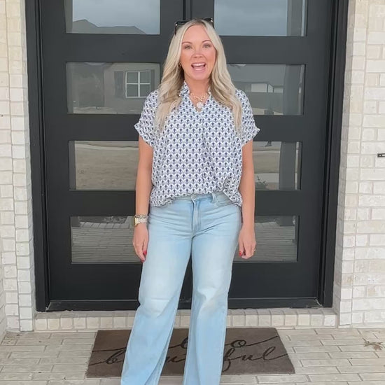 The Portside Print Blouse is an easy, polished piece you’ll reach for again and again. Featuring a subtle blue geometric print, this lightweight blouse offers a relaxed silhouette with a flattering popover neckline and cuffed sleeves. It pairs effortlessly with denim, shorts, or trousers for a look that feels both elevated and easy.