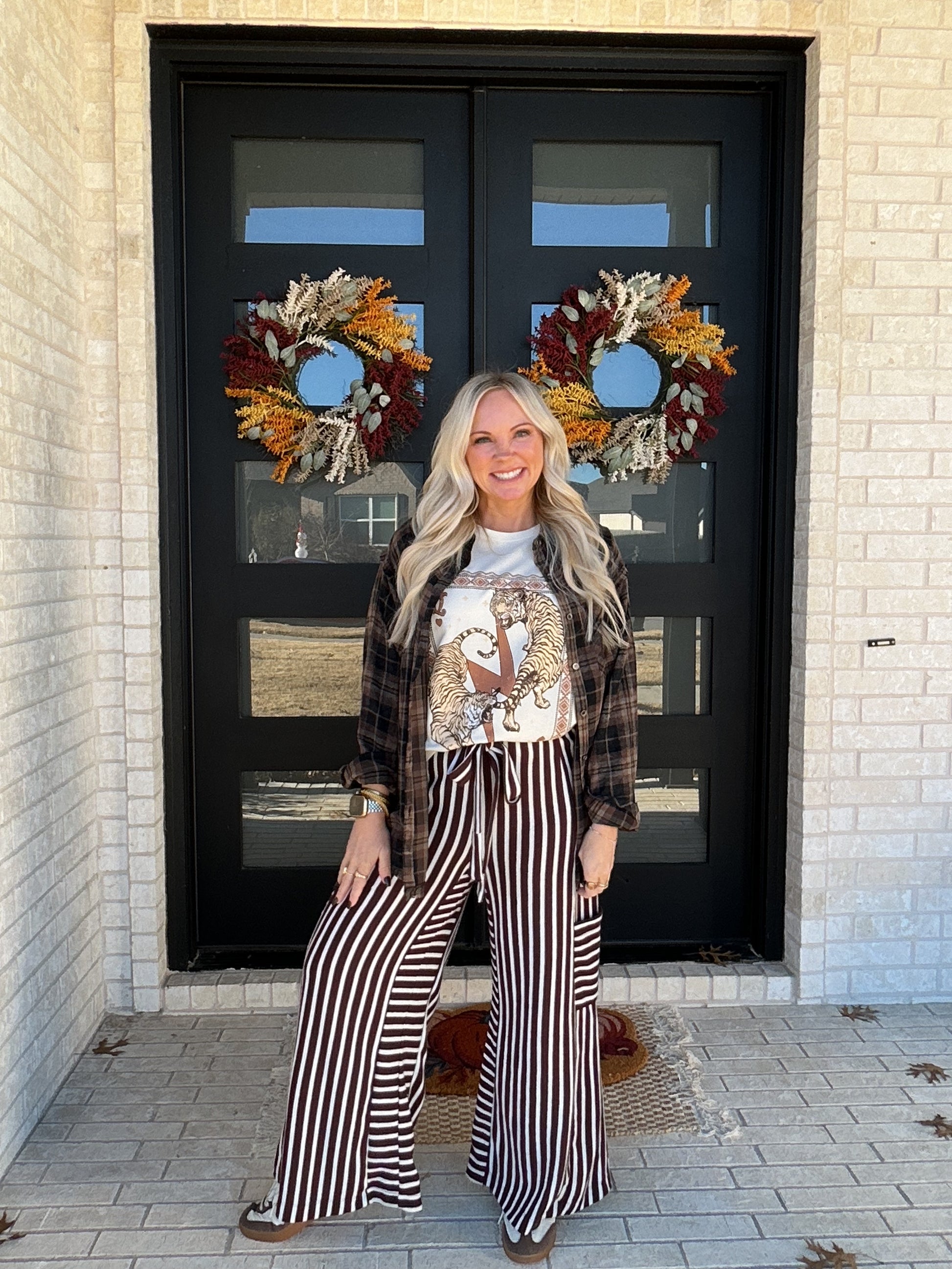 The Rust Ridge Flannel is an oversized plaid button-up with a soft brushed feel and raw-edge hem for a relaxed, slightly lived-in look. Designed with a classic collar, functional pockets, and a comfy loose fit, it layers effortlessly over tanks and tees or wears buttoned-up with denim. Cozy, versatile, and made to throw on and go.