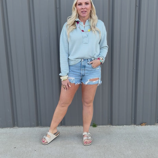 An elevated everyday essential. The Skyline Waffle Knit Pullover features a soft textured fabric with a relaxed fit and a modern collared neckline. Easy to dress up or down, this lightweight layer pairs perfectly with denim, lounge shorts, or layered over your favorite basics.