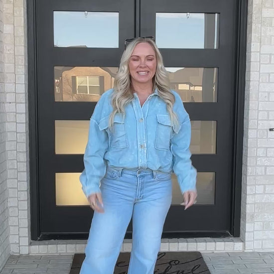 Lightweight, effortless, and endlessly layerable. This washed cotton utility jacket features a relaxed fit with oversized pockets, button-front closure, and a soft lived-in feel. The cropped length makes it perfect for pairing with high-rise denim, cargos, or your favorite everyday basics for an easy, laid-back look.