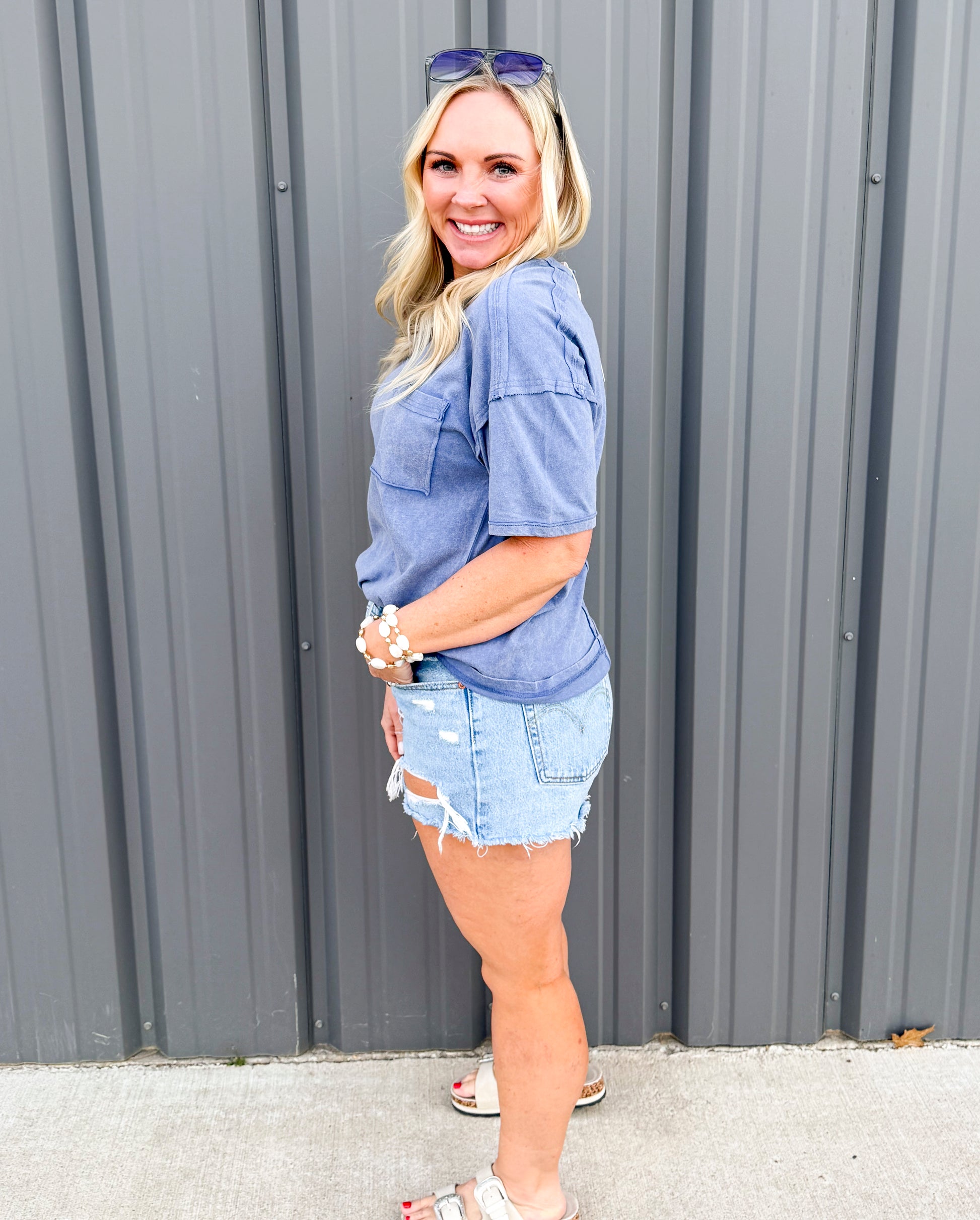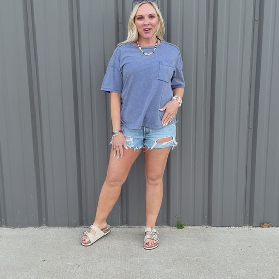 Your everyday essential — elevated. The Washed Tide Pocket Tee features a soft mineral-washed finish in the perfect coastal blue. Designed with an easy oversized fit and classic chest pocket detail, this 100% cotton tee delivers that lived-in, beach-day feel from the first wear.