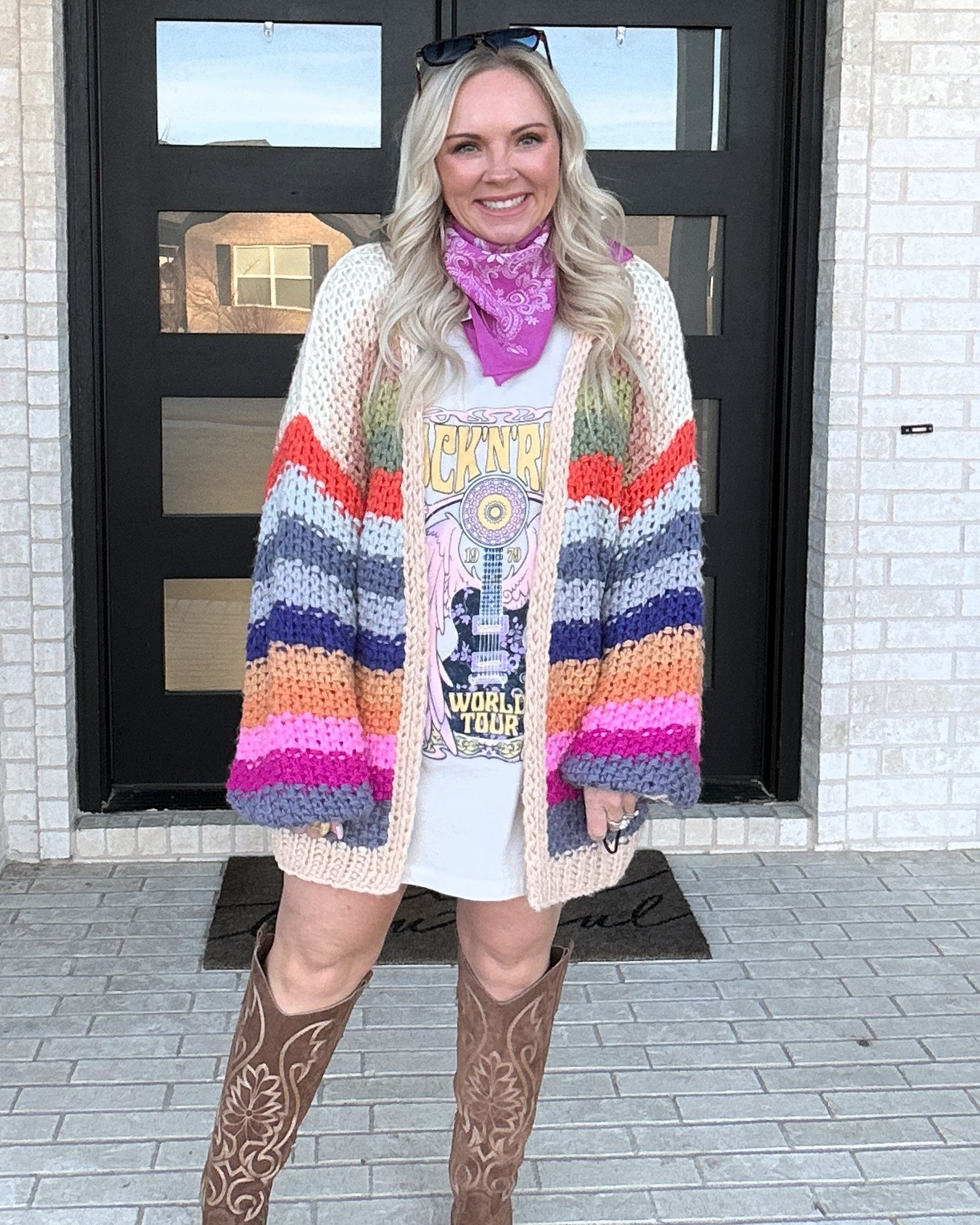 - Adds a pop of color to casual and layered outfits